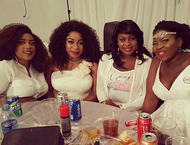 Friends of talented Nollywood actress,Bimbo Thomas yesterday in Houston, U.S.A organised an all white baby shower for the heavily pregnant role interpreter.